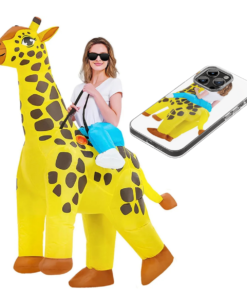 ¡Alza tu diversión hasta las alturas con el Disfraz Inflable de Jirafa Montable! Este impresionante traje convierte a cualquier adulto en la jirafa más alta y divertida de la fiesta. Con su diseño inflable único, incluye una estructura montable que permite que otros suban y disfruten del paseo mientras tú llevas la diversión. Fabricado en nylon resistente con sistema de inflado automático (ventilador con pilas), se mantiene firme durante horas de uso.